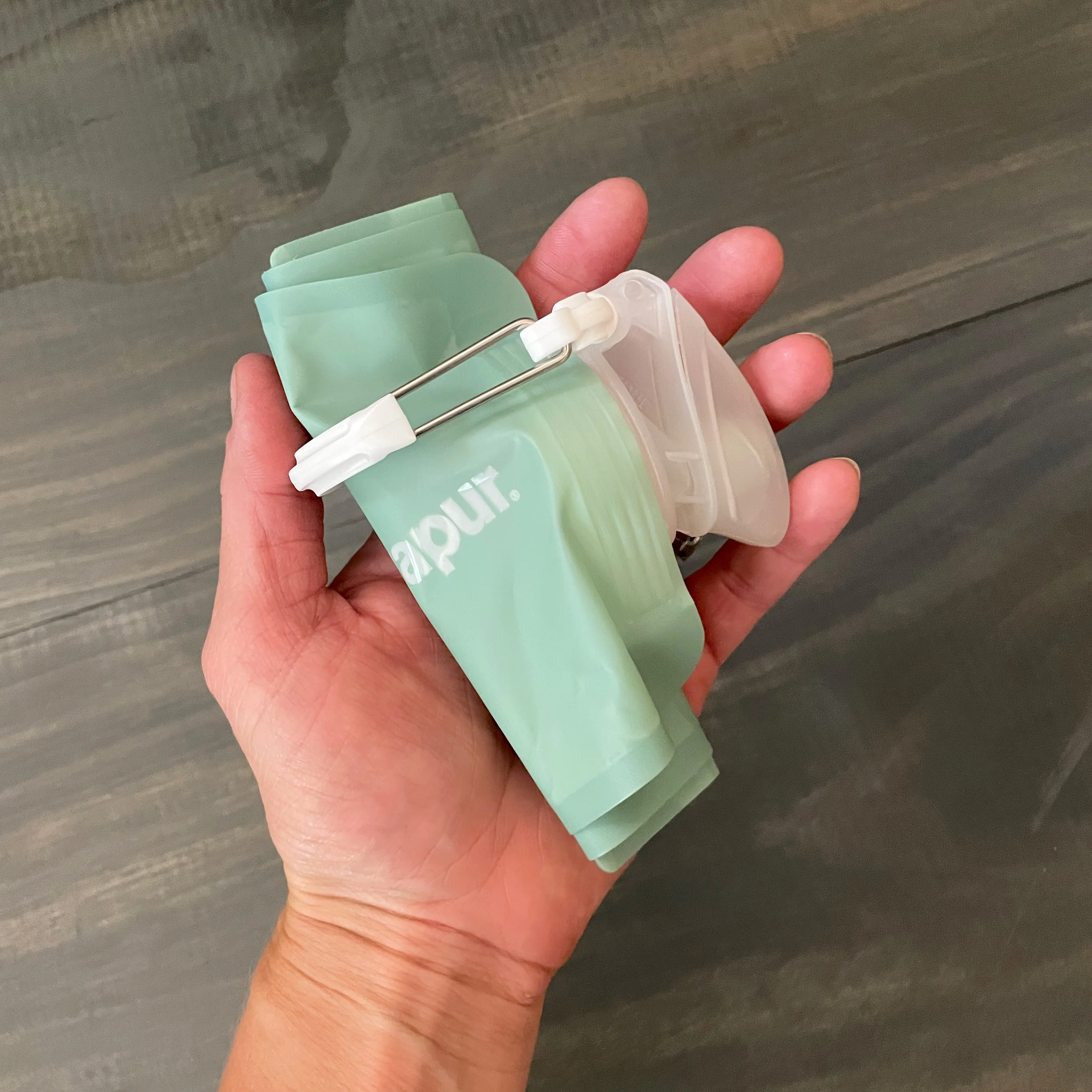Once the water is drank, roll it up and clip the carabiner over the roll to store away super tight. Grab one or two to always have on hand.